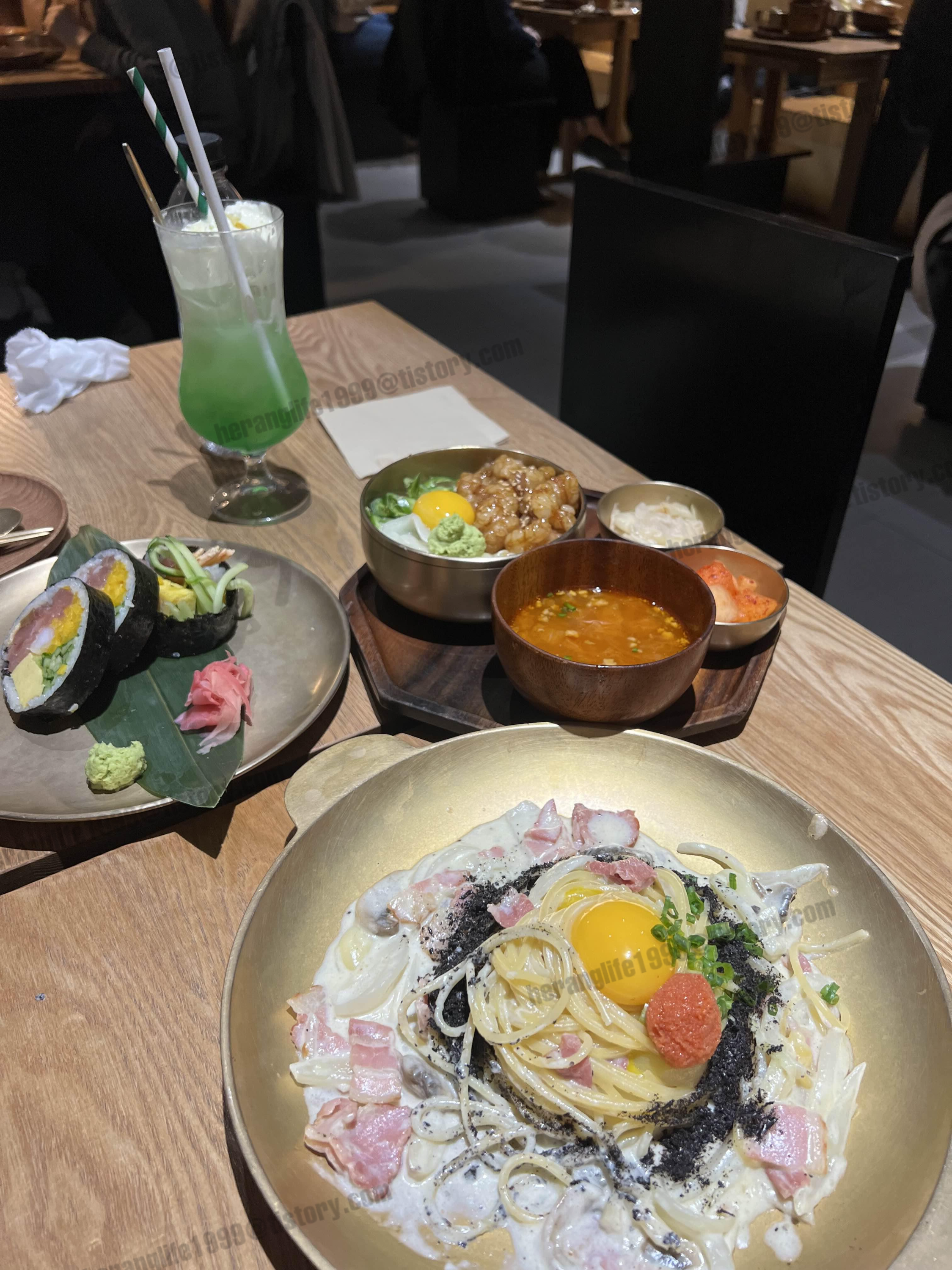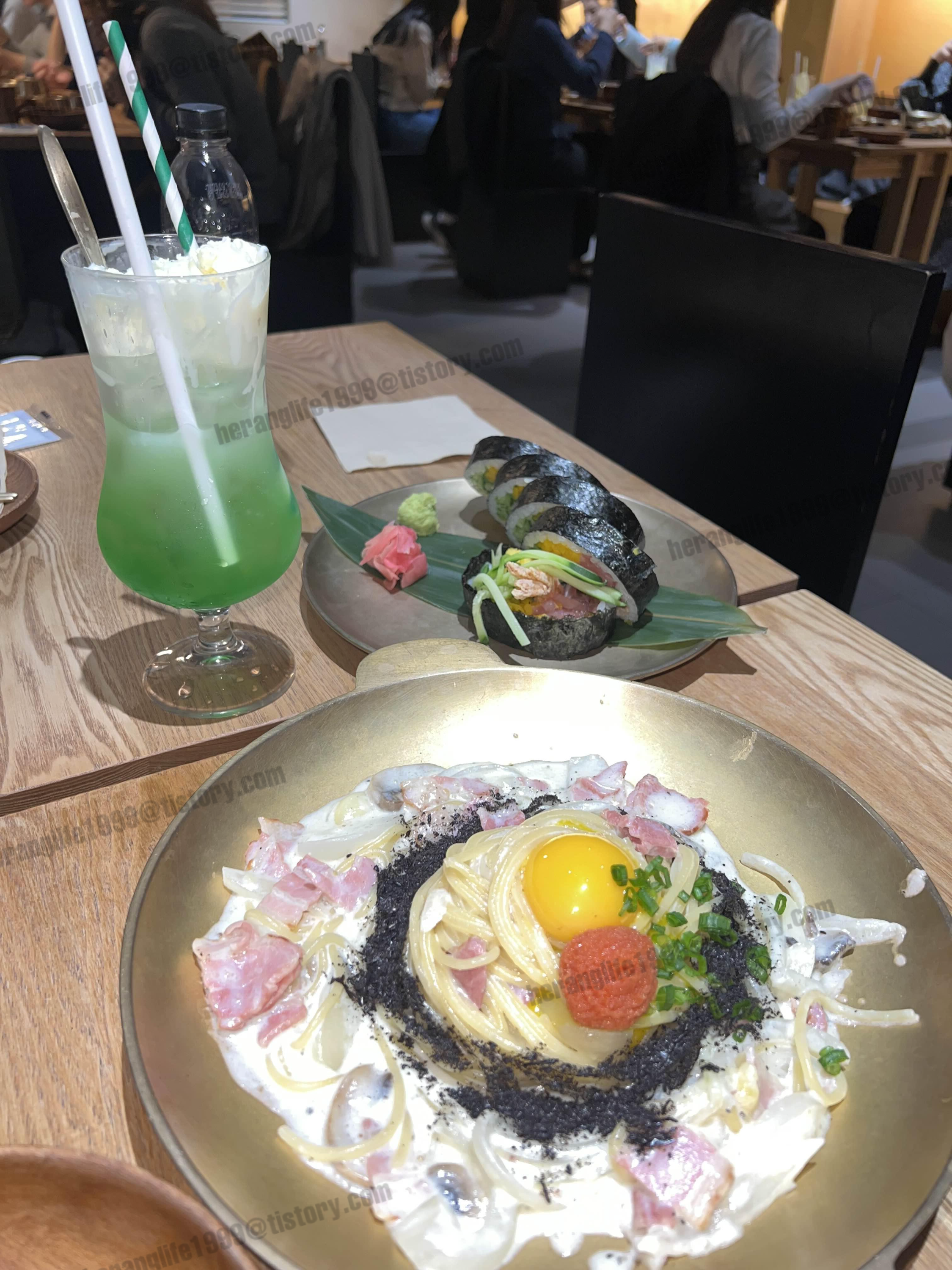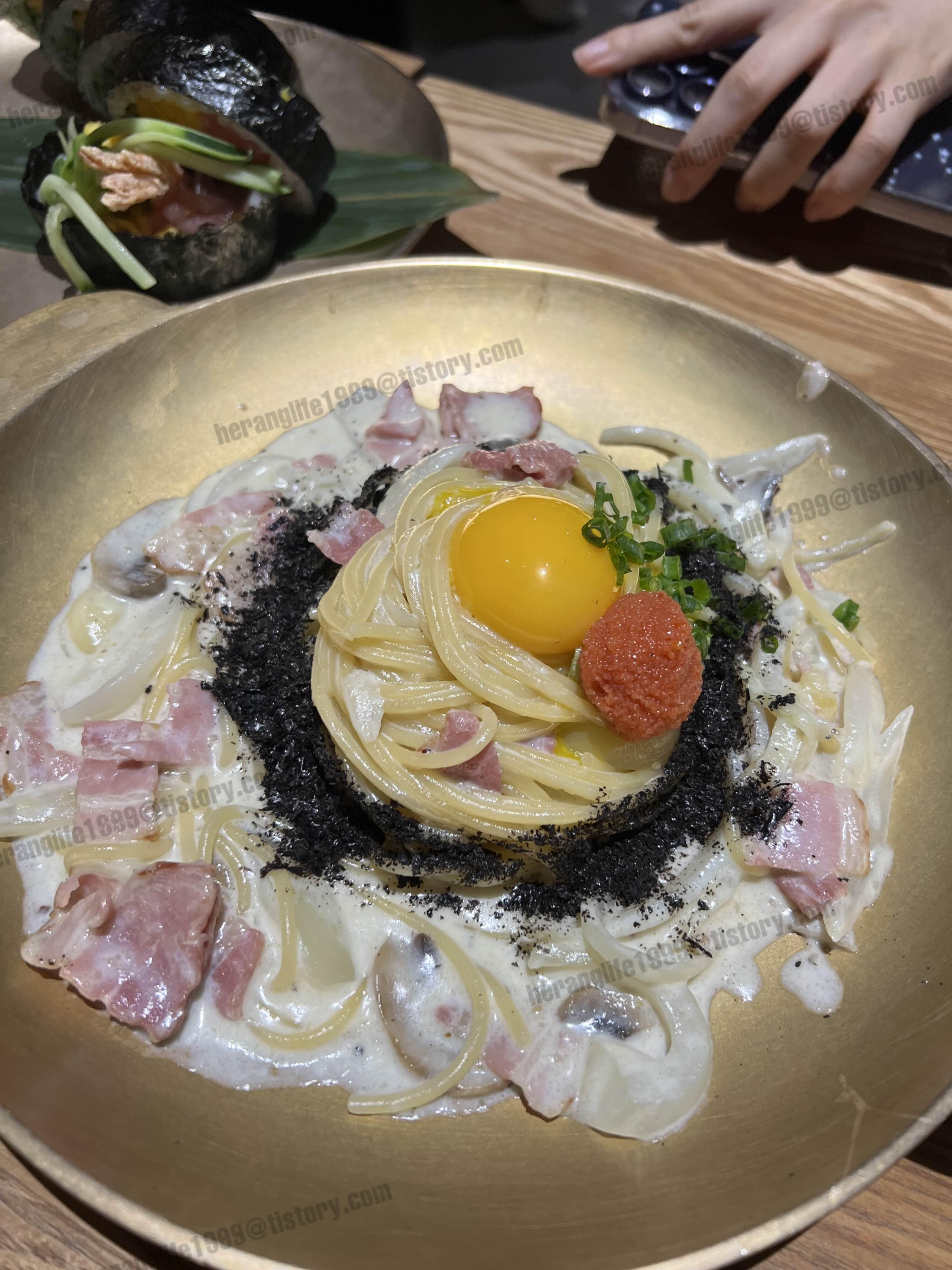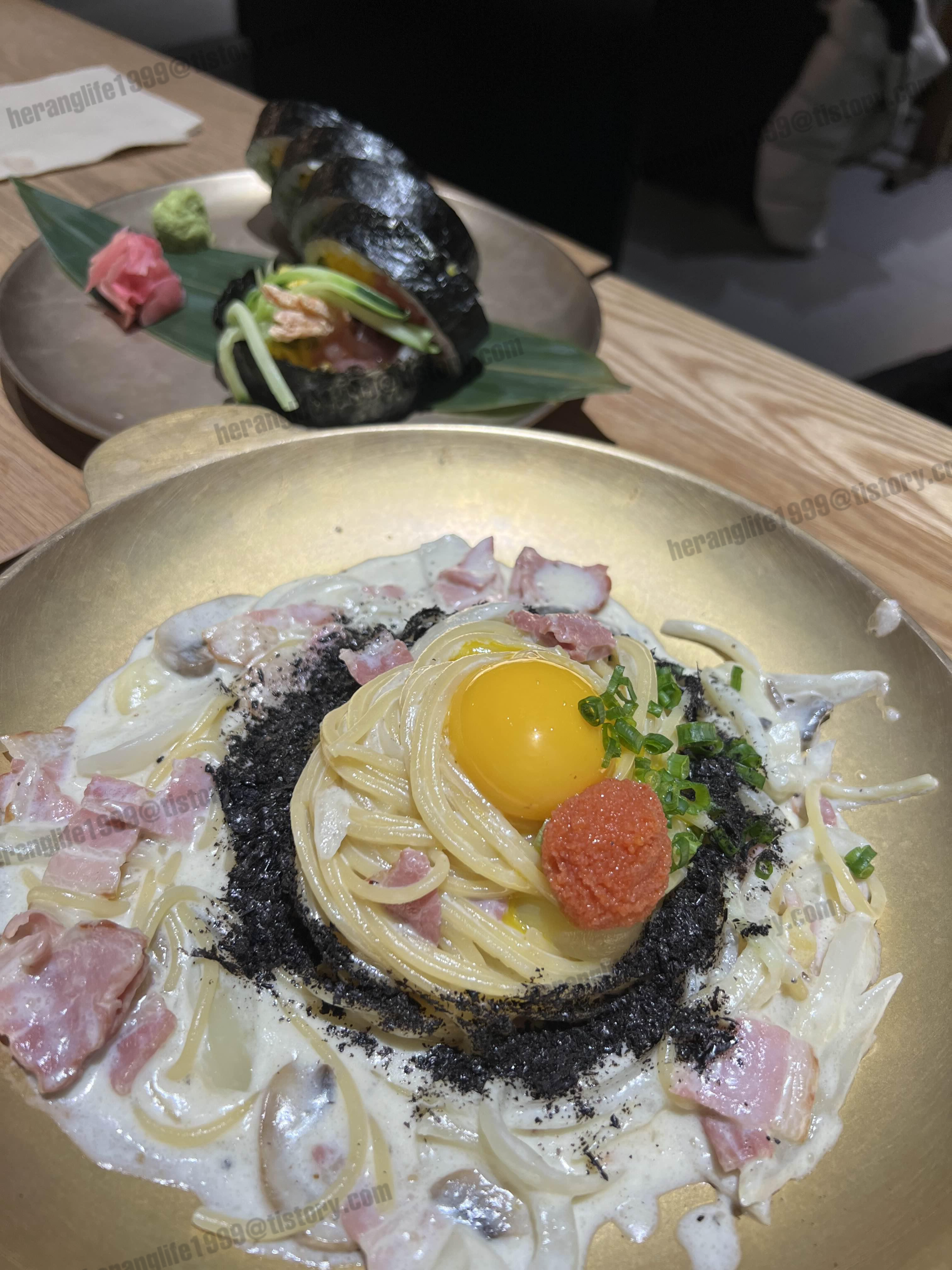 명란 까르보나라랑 후토마끼가 먼저 나왔어요