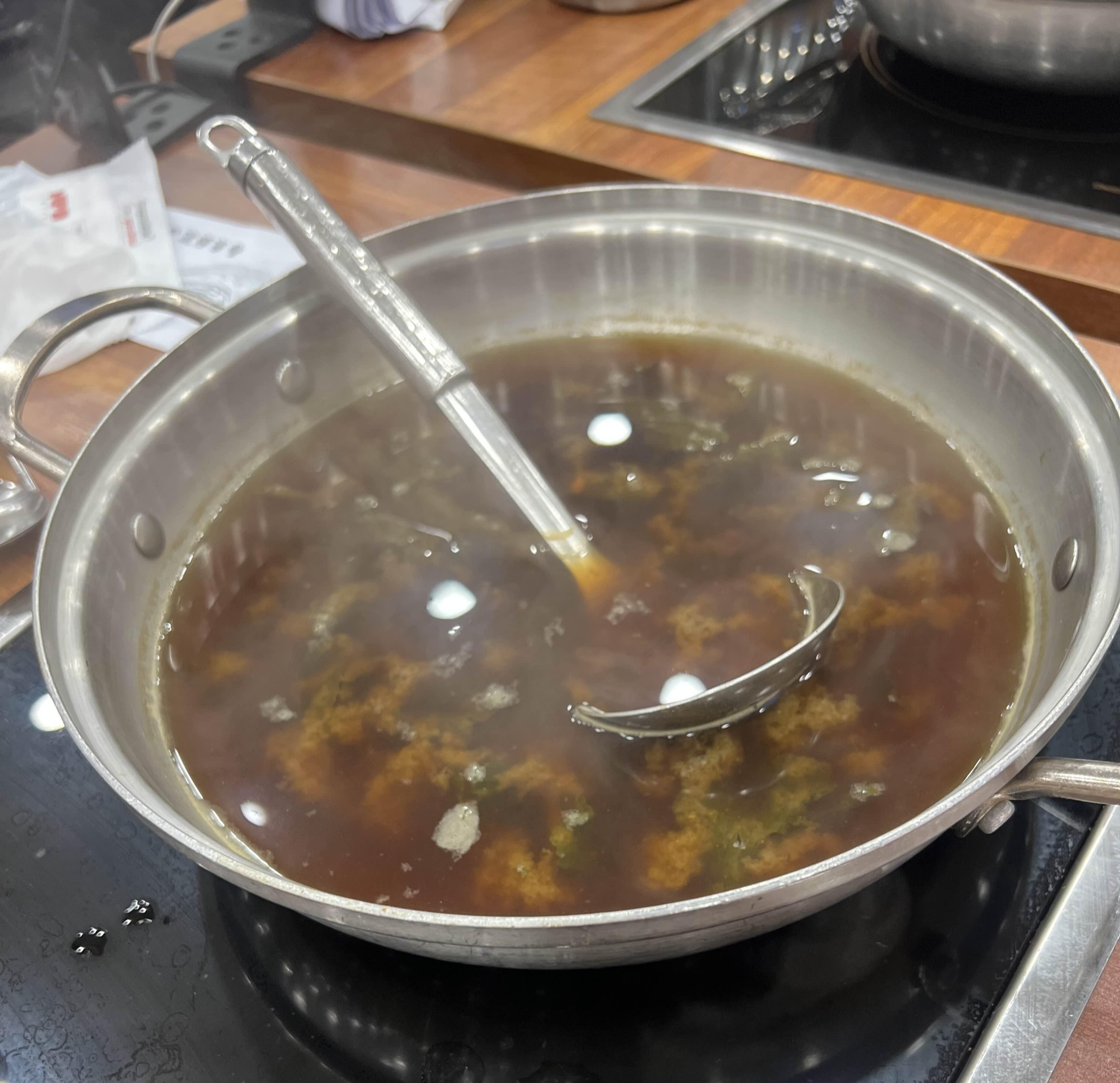 음식나오기전에 된장국을 하이라이터에 올려줌